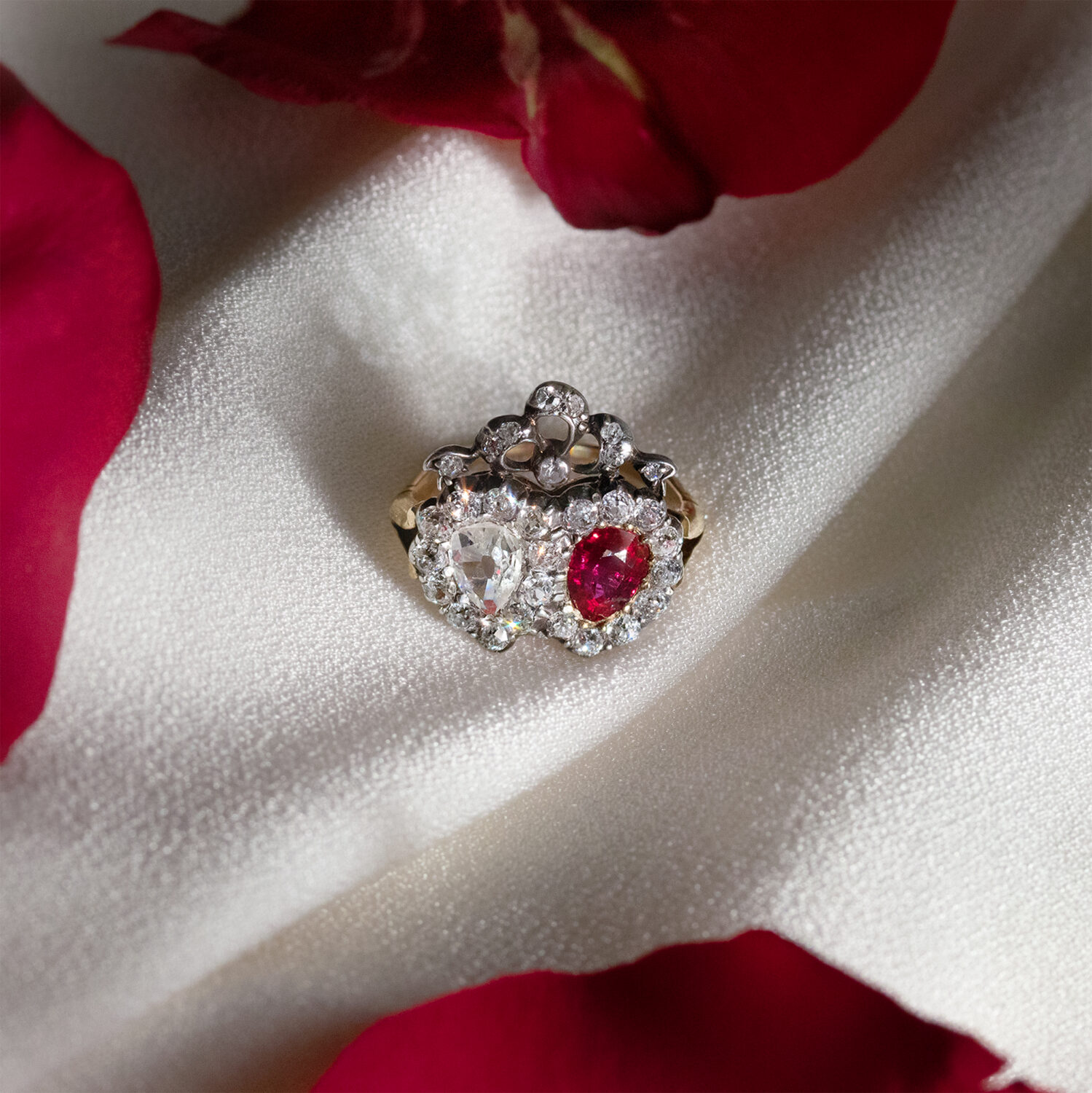 Victorian 1.03ct Ruby and Diamond Double Heart Ring, c.1880s