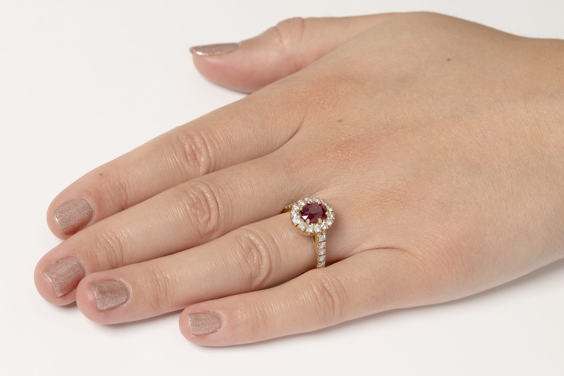 Contemporary 1.35ct Ruby and Diamond Halo Ring