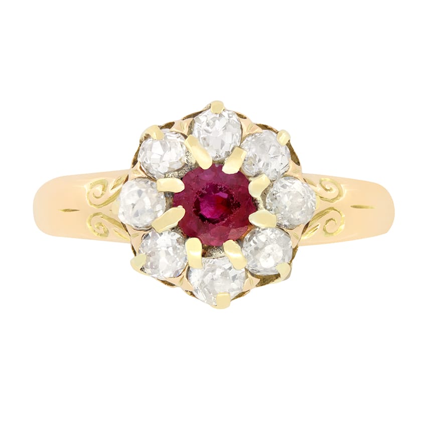 Victorian 0.50ct Ruby and Diamond Cluster Ring, Hallmarked 1885