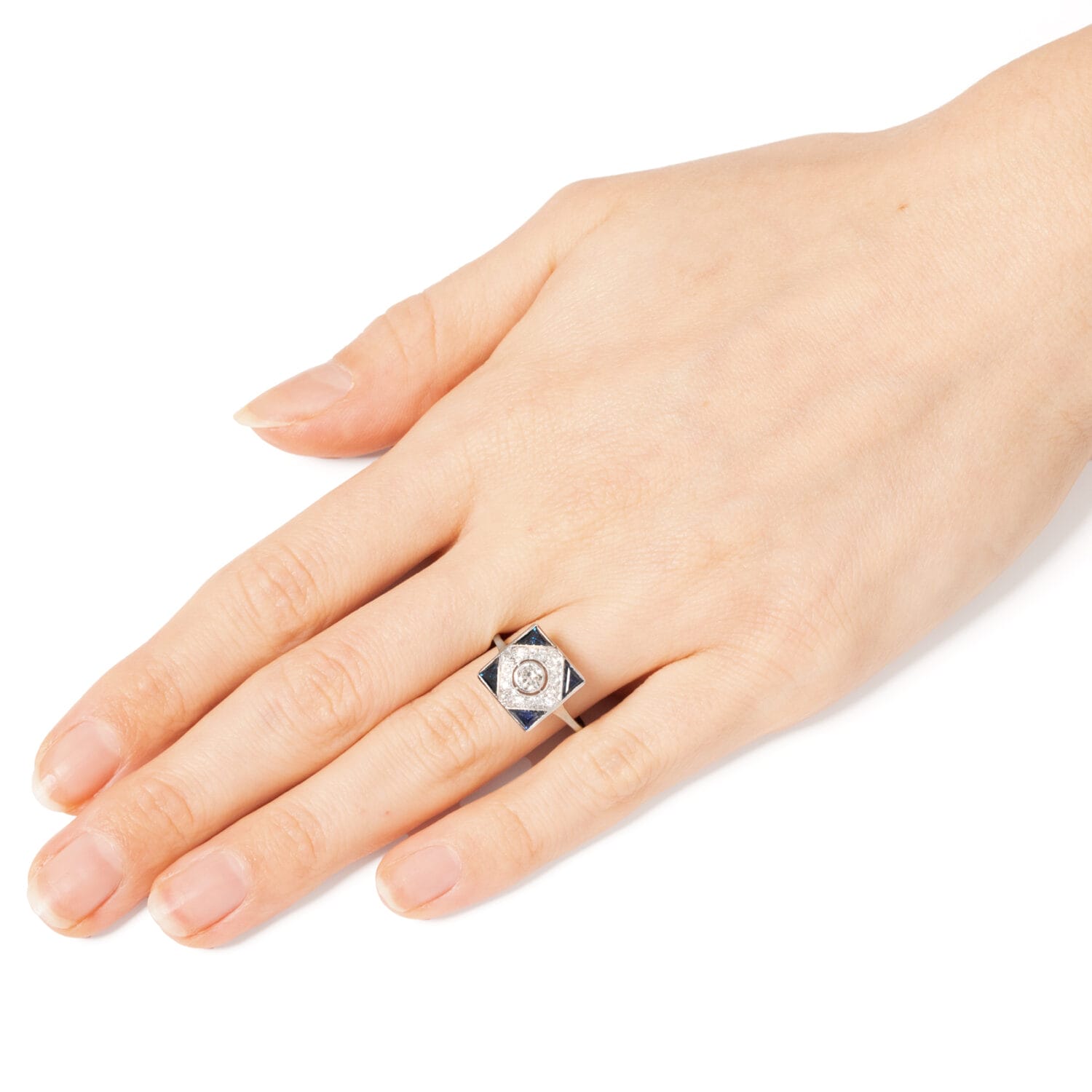 Art Deco 0.50ct Diamond and Sapphire Square Cluster Ring, c.1920s