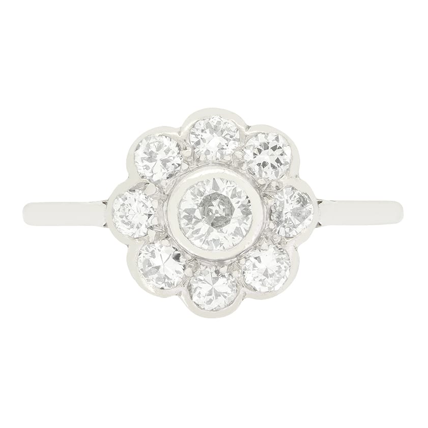 Art Deco 0.65ct Diamond Daisy Cluster Ring, c.1920s