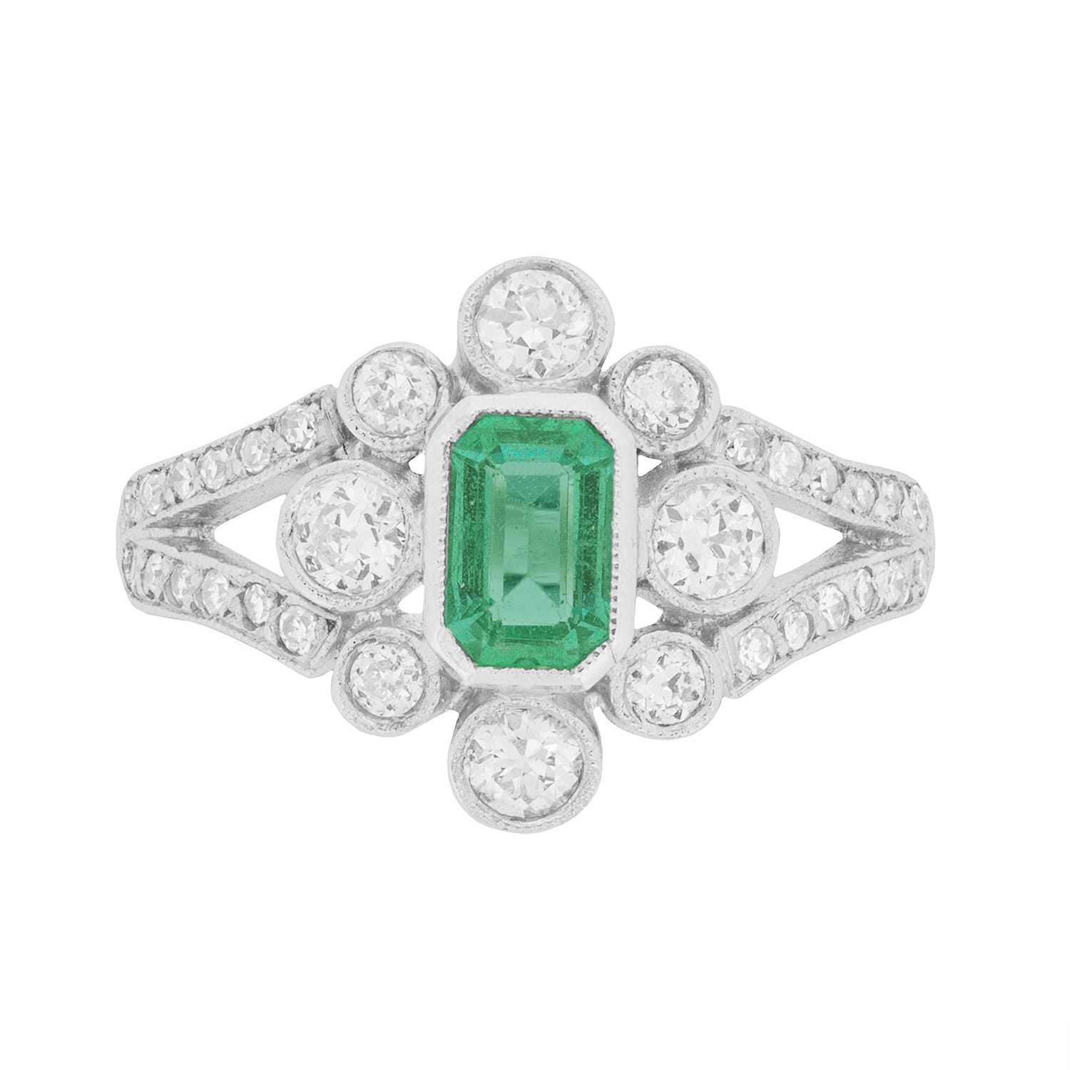 Art Deco 0.70 Carat Emerald and Diamond Cluster Ring, c.1940s