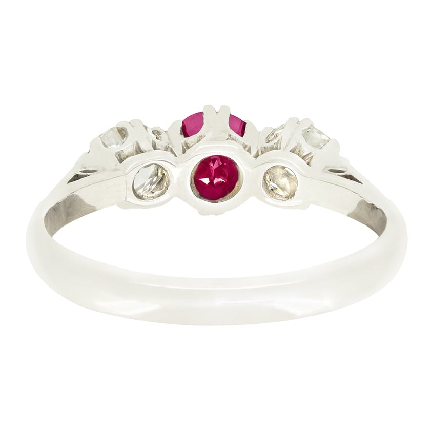 Art Deco 0.75ct Ruby and Diamond Three Stone Ring, c.1920s