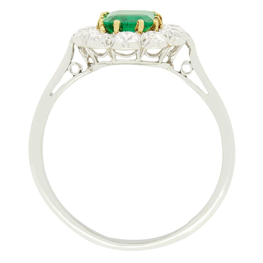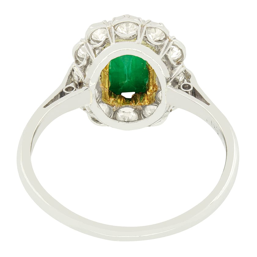 Art Deco 0.80ct Emerald and Diamond Cluster Ring, c.1920s