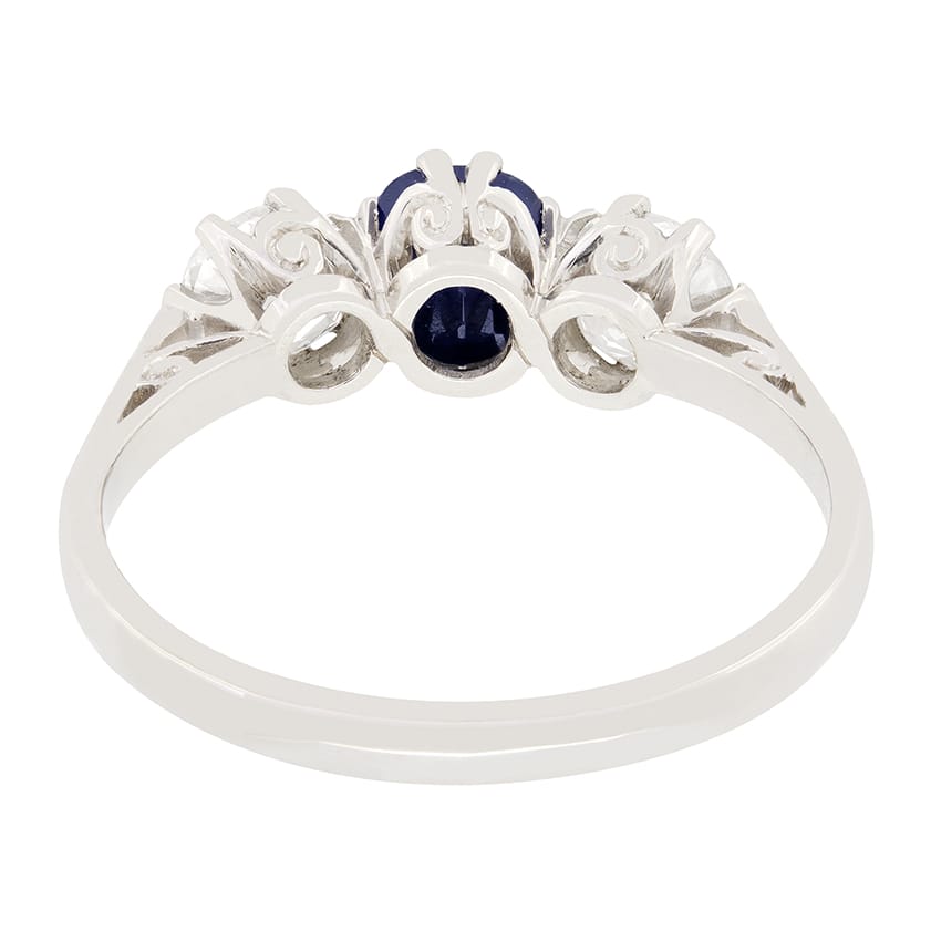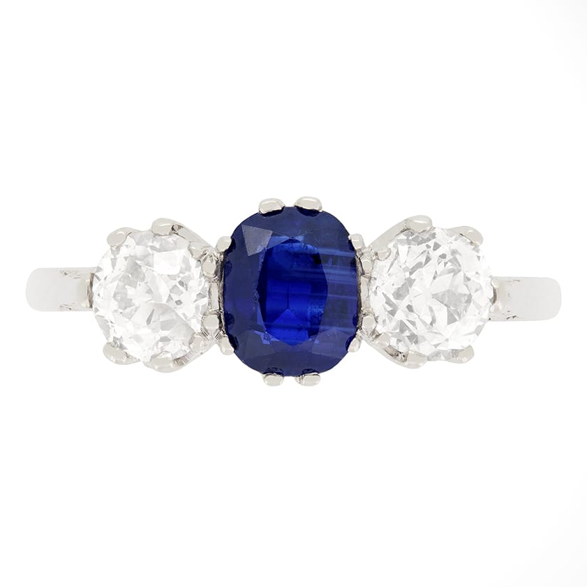 Art Deco 0.90ct Sapphire and Diamond Three Stone Ring, c.1920s