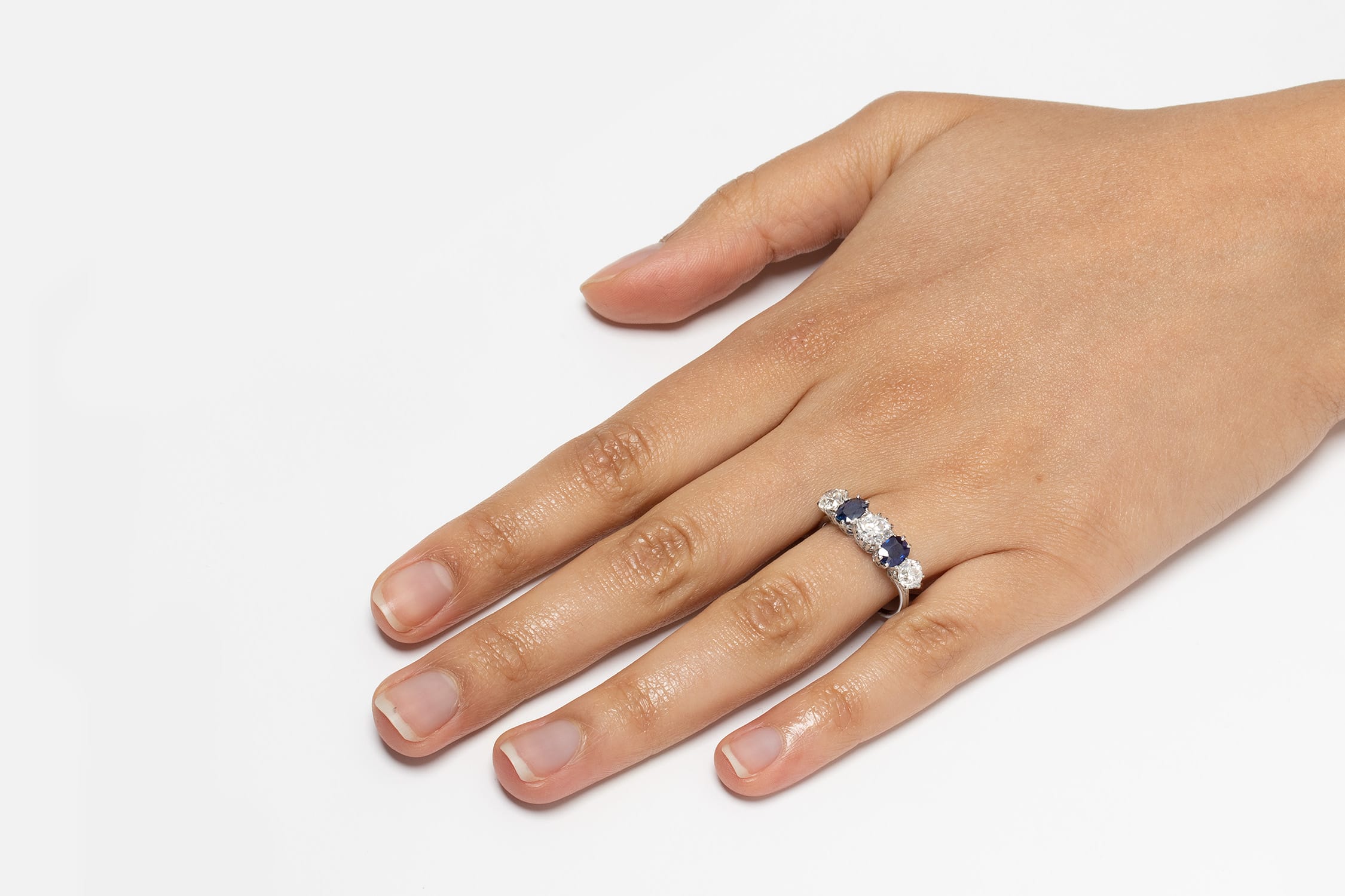 Art Deco 1.80ct Diamond and Sapphire Five Stone Ring, c.1920s
