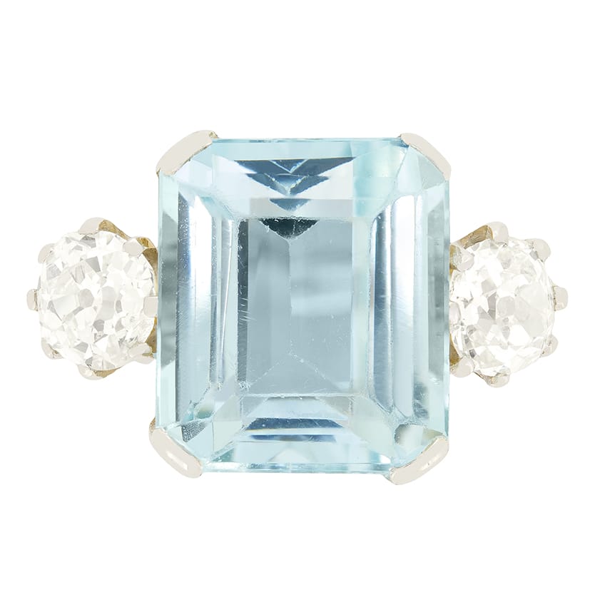 Art Deco 5.50ct Aquamarine and Diamond Trilogy Ring, c.1920s