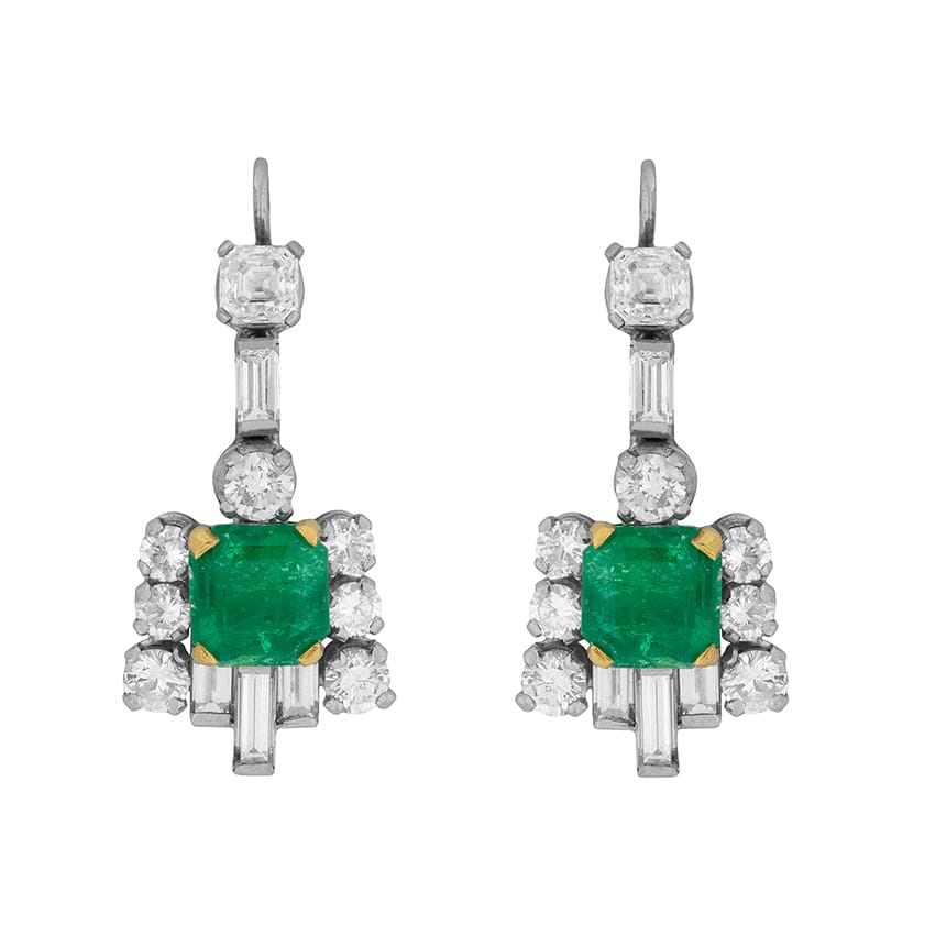 Art Deco Emerald and Diamond Drop Earrings, c.1920s