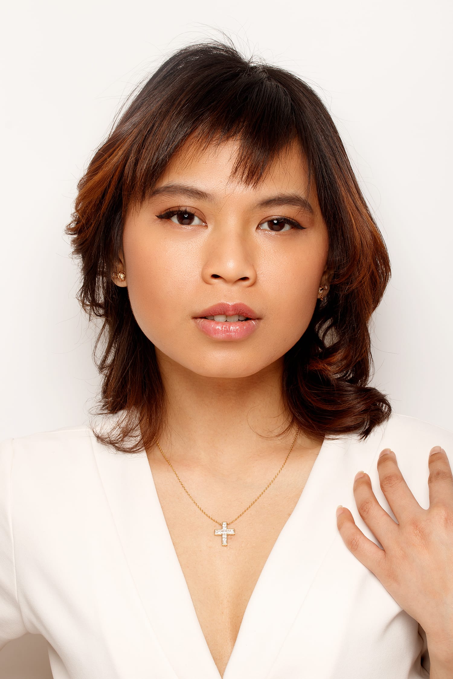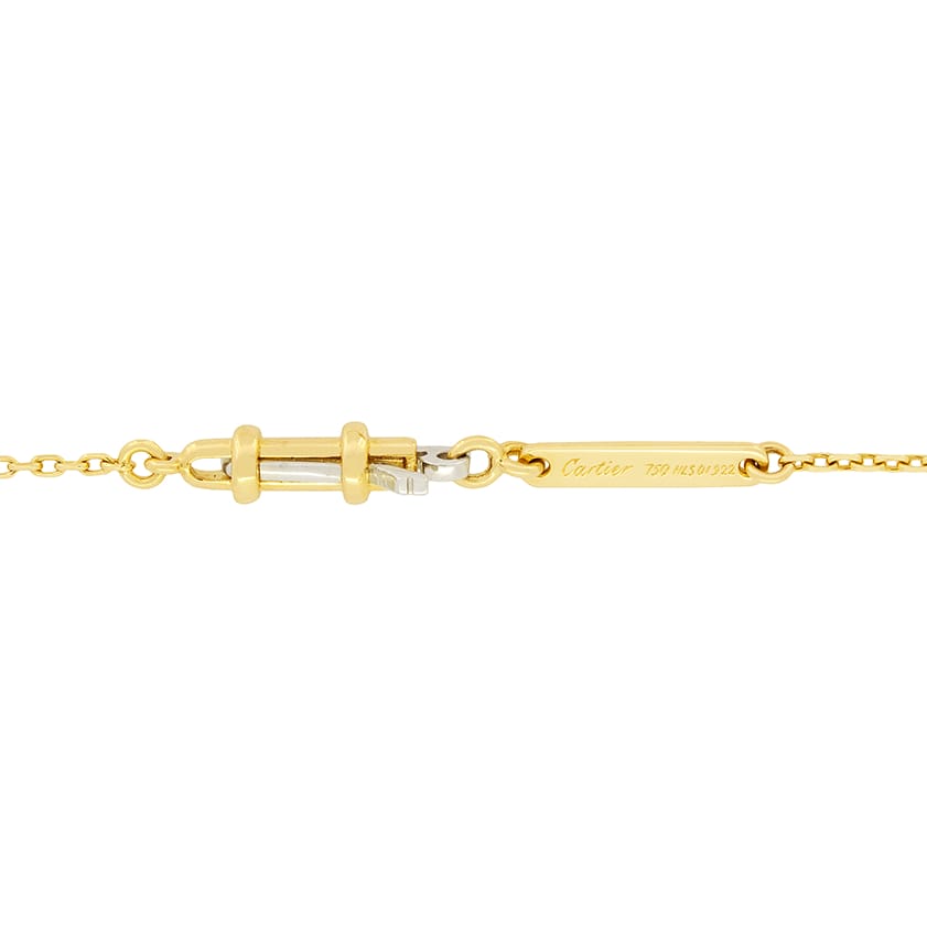A brilliant Cartier diamond cross necklace presented with ten princess cuts set to the front of the pendant and a further twenty-eight round brilliant cut diamonds set into the sides of the metal framework, creating a very dazzling yet sophisticated look. The princess cut diamonds come to a total weight of 1.07 carats and the round diamonds come to a total weight of 0.28 carat. All the diamonds match in quality, being graded as E-F in colour and VVS in clarity. This necklace has been made in 18ct yellow gold with a 17″ chain and comes with an original Cartier receipt.