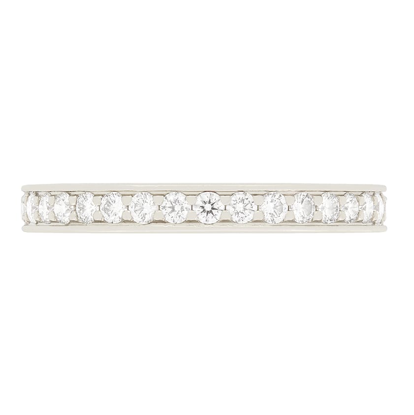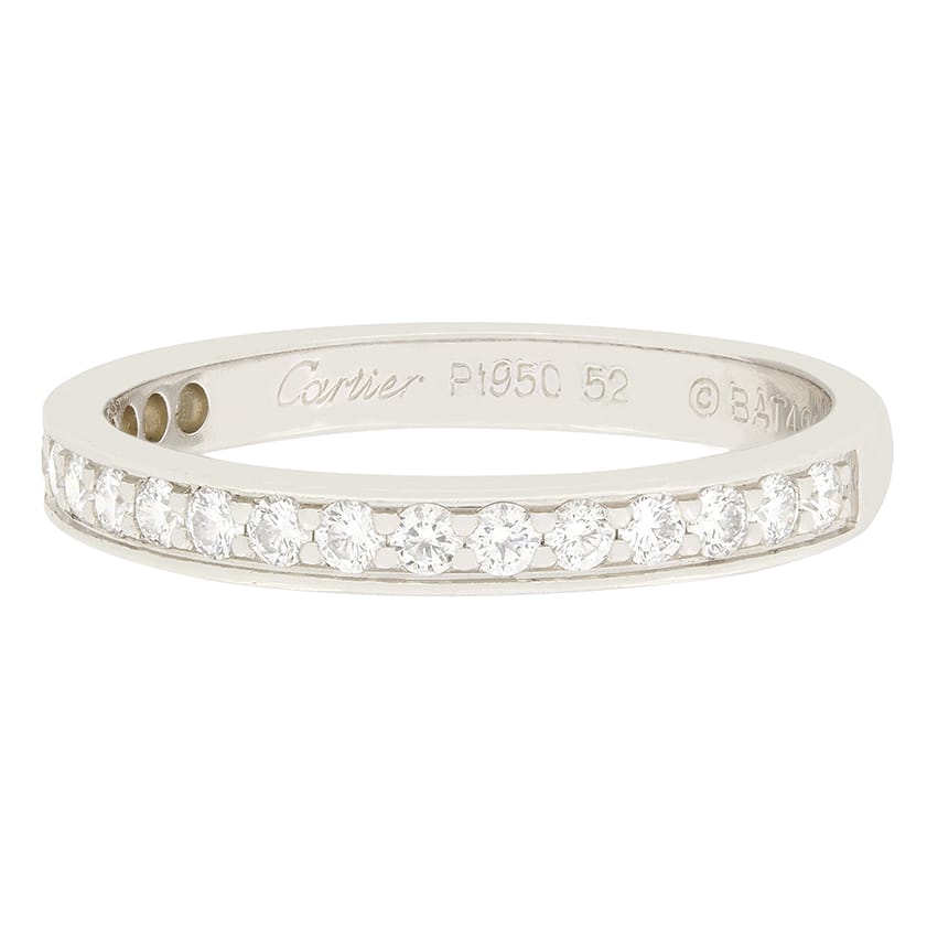 From Cartier’s ‘1895’ collection is this lovely platinum half eternity band. The diamonds have been grain set and total to 0.27 carat. They are all F in colour and VVS in clarity. All original hallmarks can be seen inside the band.
