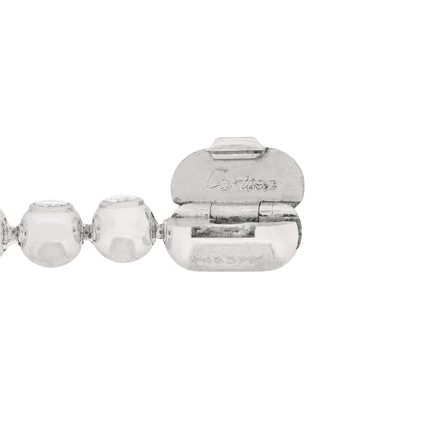 The diamonds are rub over set , and is finished with a strong clasp to ensure it’s saftey. This authentic, pre-owned necklace is signed ‘Cartier’ and has all the appropriate hallmarks.