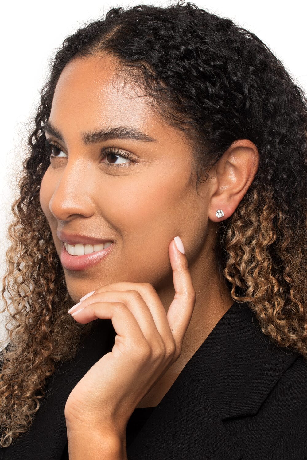 This timeless pair of stud earrings feature a radiant 1.01 carat round brilliant diamond in each. Both diamonds have been certified I in colour and range in clarity from VS1 to VS2 in clarity. The diamonds are claw set in a ‘V’ shaped stud mount crafted in 18ct white gold. These gorgeous stud earrings come with an alpha back to hold them securely.