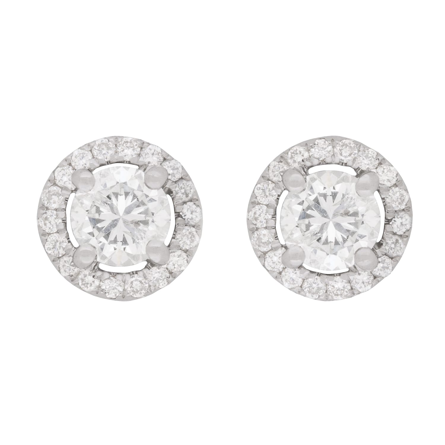 These elegant diamond earrings have a 0.26 carat diamond in the centre of a claw set halo. Each stud contains a further 0.18 carat of diamonds in the halo, all of which match in quality. They have been given a grade of G in colour and SI in clarity. They are made of 18 carat white gold and truly shine on any wearer!
