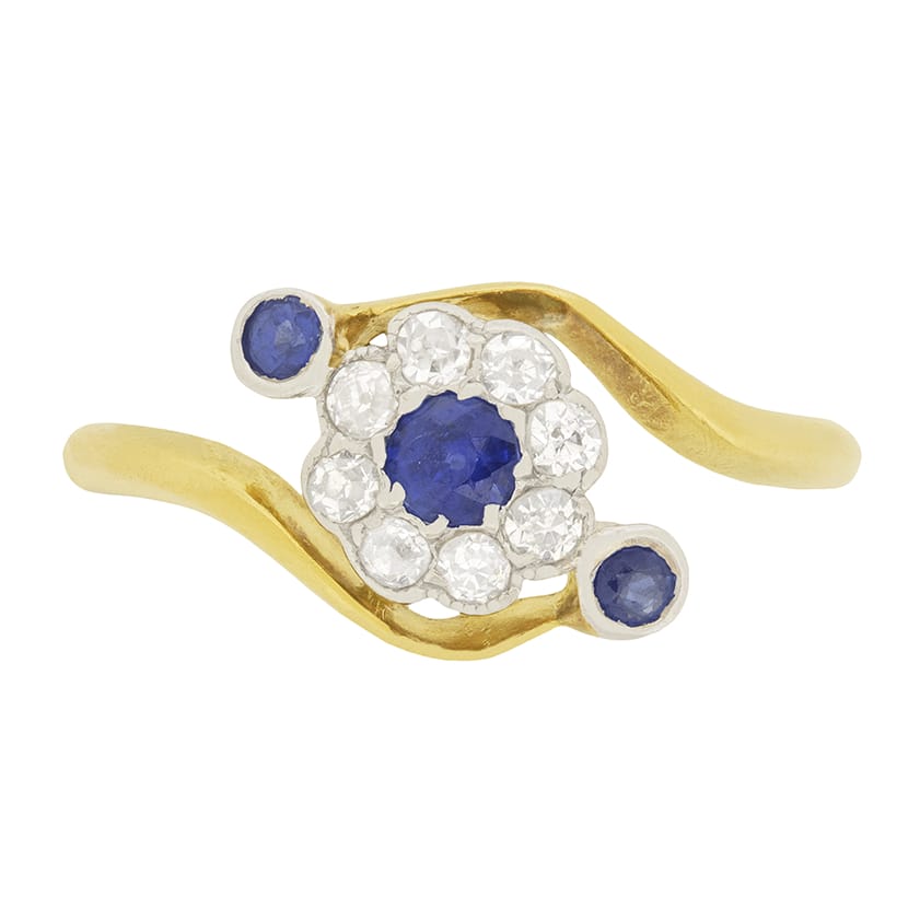 Edwardian 0.15ct Sapphire and Diamond Daisy Twist Ring, c.1900s