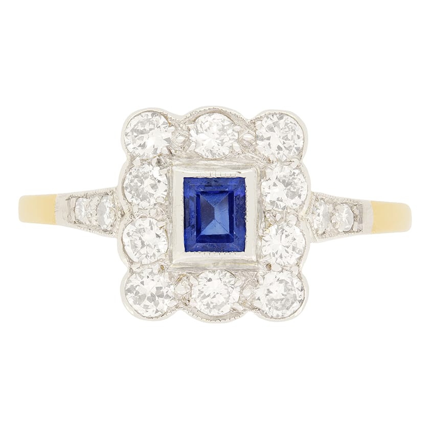 Edwardian 0.25ct Sapphire and Diamond Cluster Ring, c.1910s