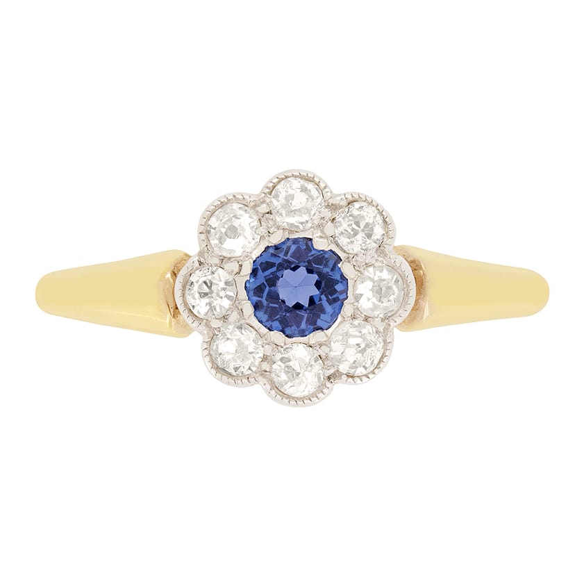 Edwardian 0.25ct Sapphire and Diamond Daisy Cluster Ring, c.1910s