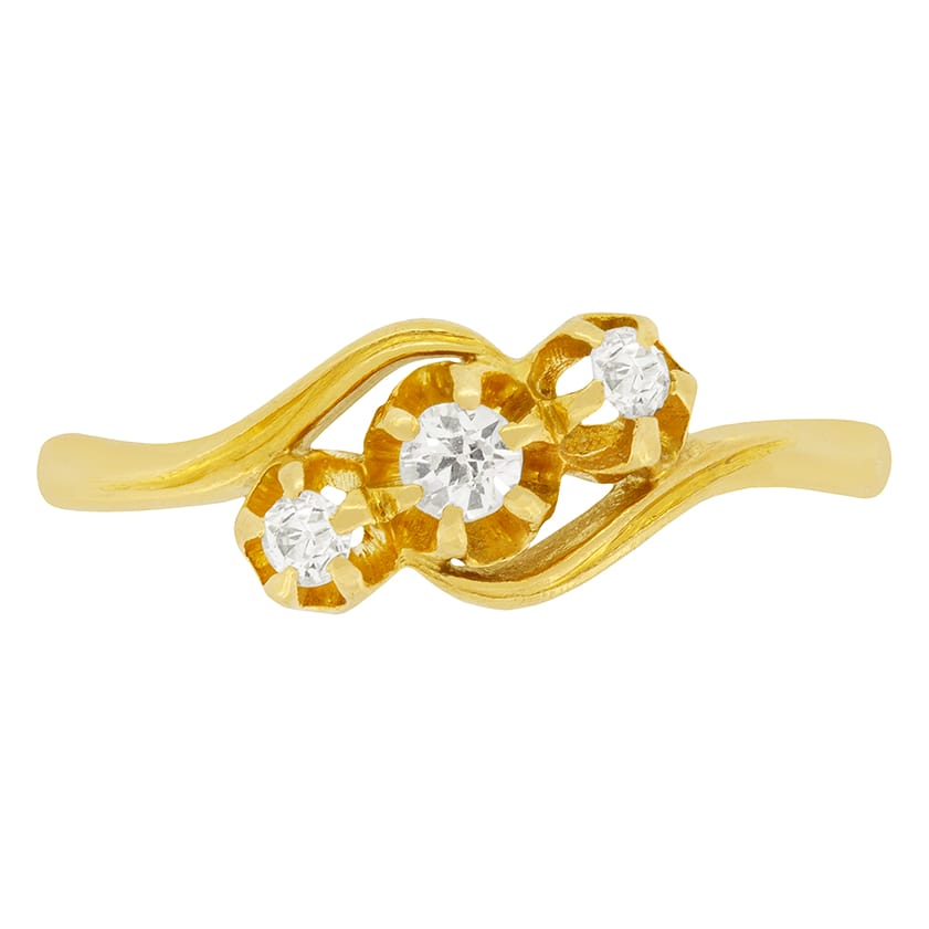 Edwardian 0.29ct Diamond Three Stone Twist ring, c.1910s