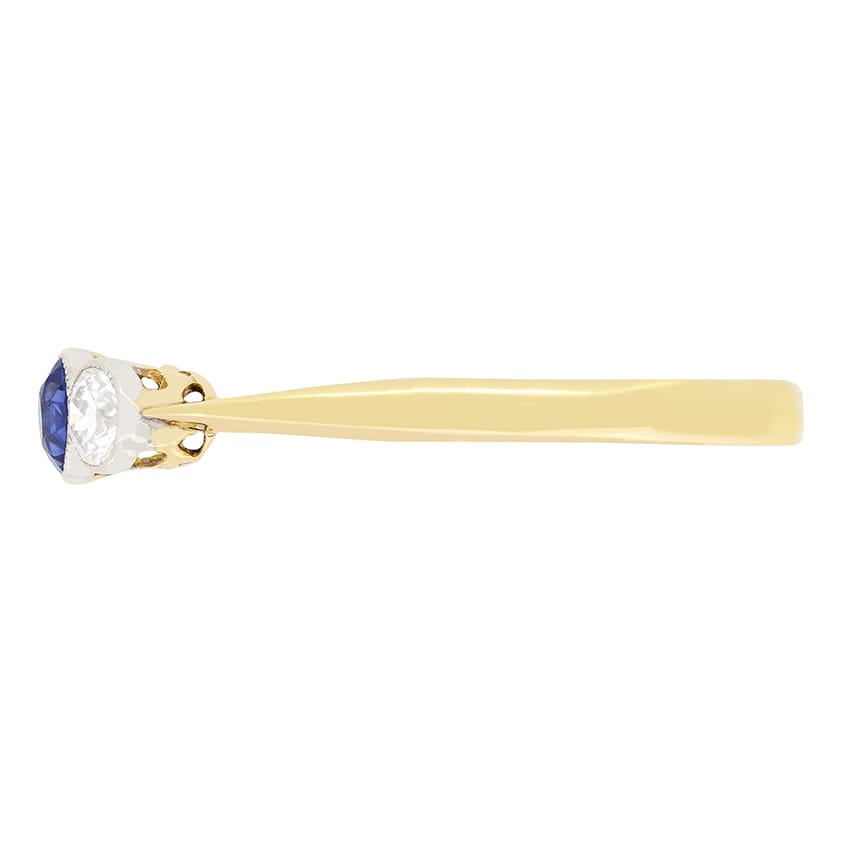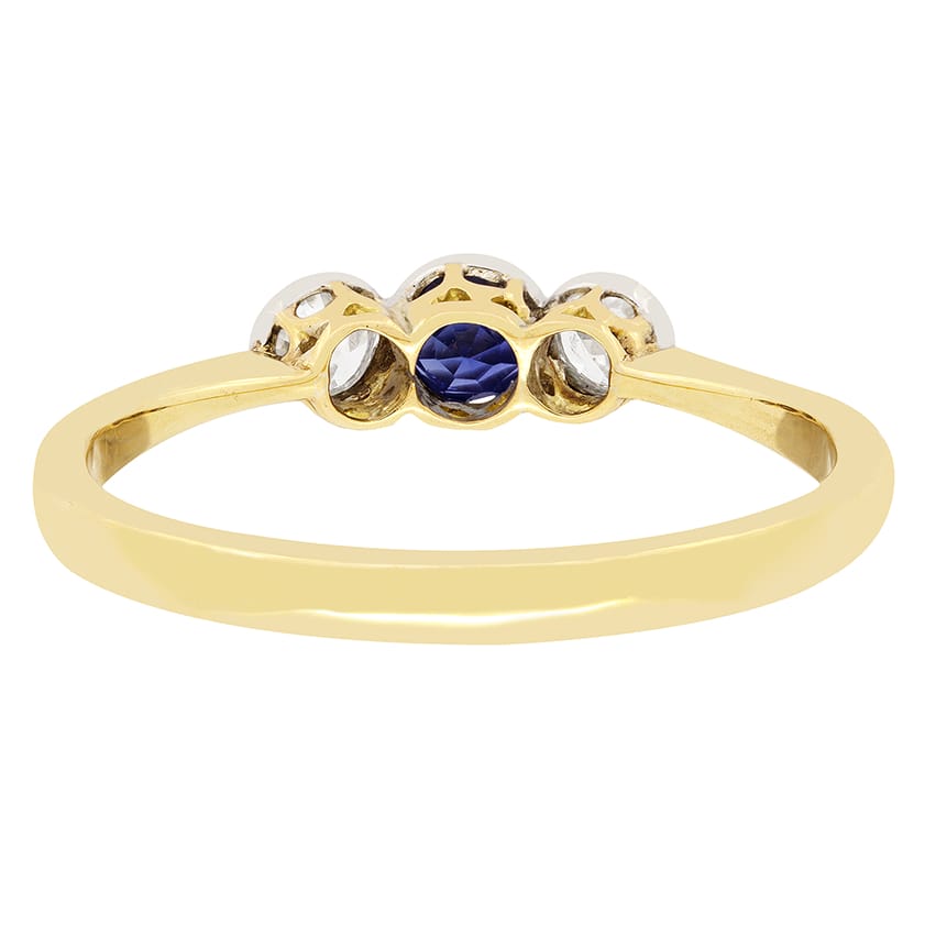Edwardian 0.40ct Sapphire and Diamond Three Stone Ring, c.1910s