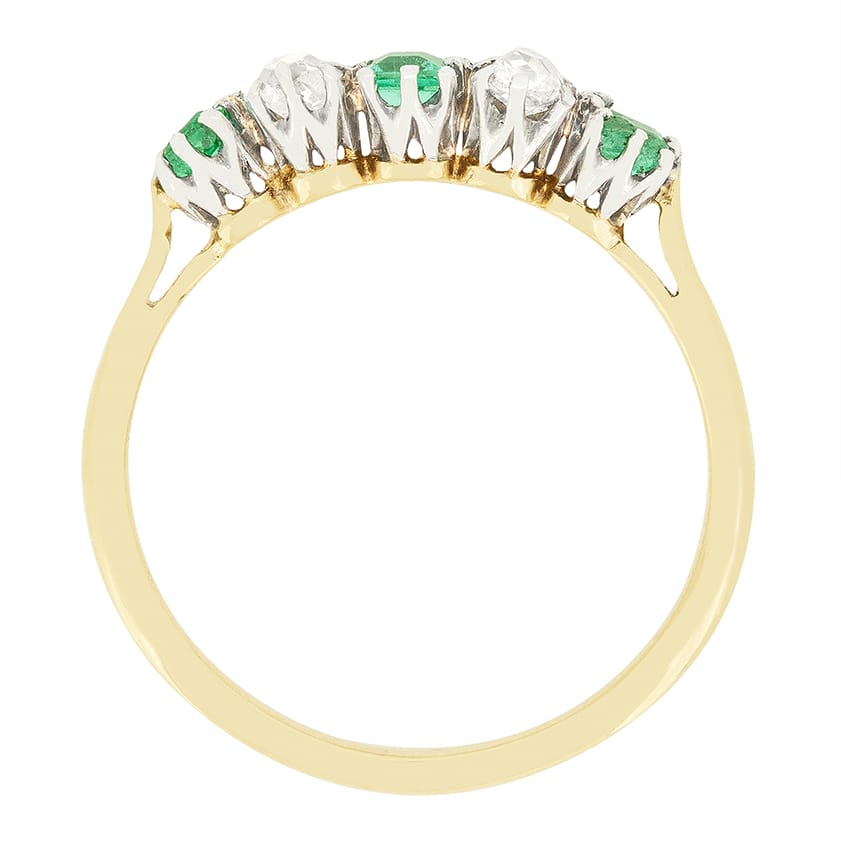 Edwardian 0.50ct Emerald and Diamond Five Stone Ring, c.1910s