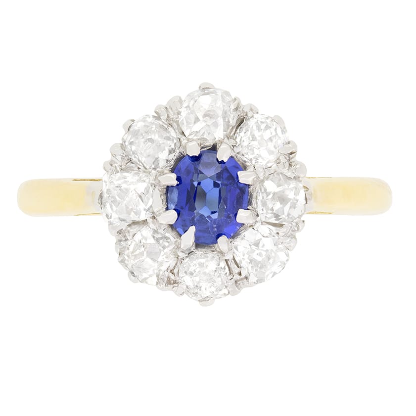 Edwardian 0.50ct Sapphire and Diamond Cluster Ring, c.1910s