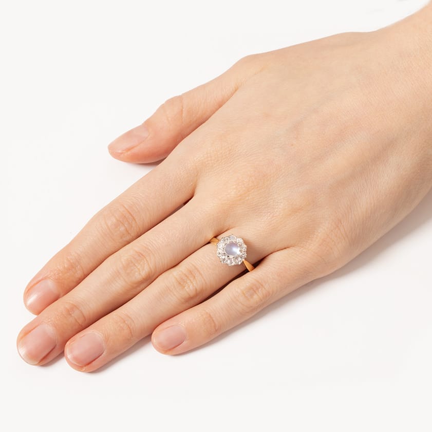 Edwardian 1.00ct Moonstone and Diamond Cluster Ring, c.1910s