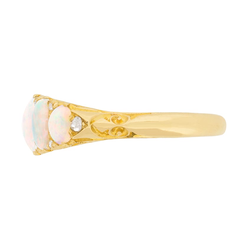 Edwardian Opal and Diamond Carved Shank Ring, c.1902