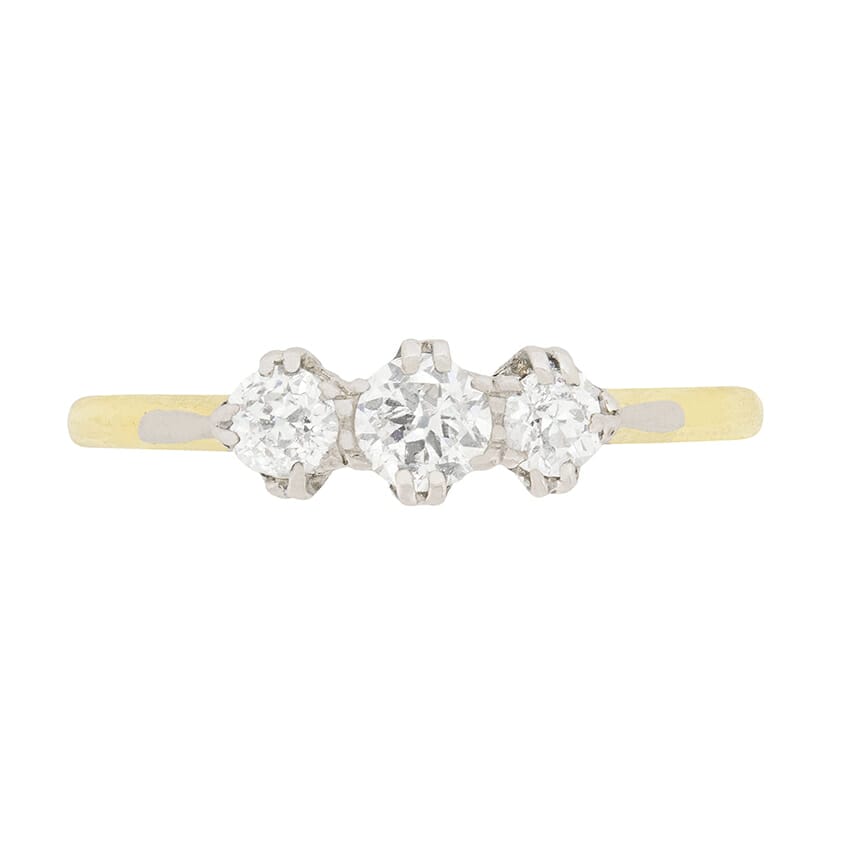 Edwardian Three Stone Diamond Engagement Ring, c.1910
