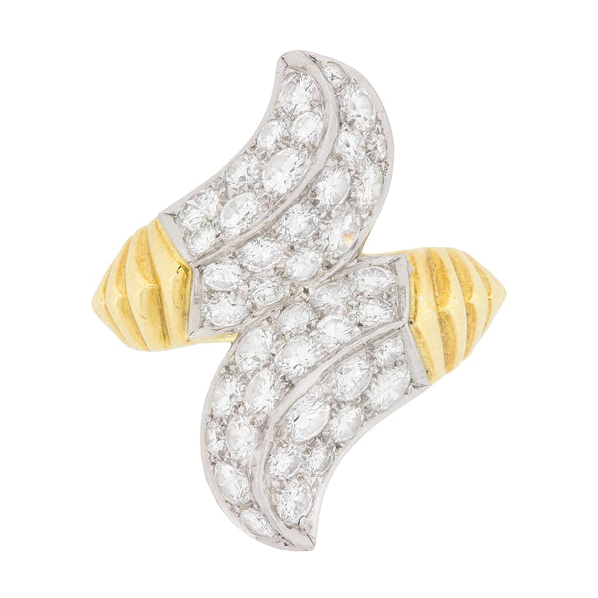 This fabulous ring is by ‘Avant Garde’ designer, Kutchinsky. This larger than life dress ring totals 3.00 carat of round brilliant cut diamonds. The diamonds are grain set within 18 carat white gold accenting the brilliance of the diamonds.