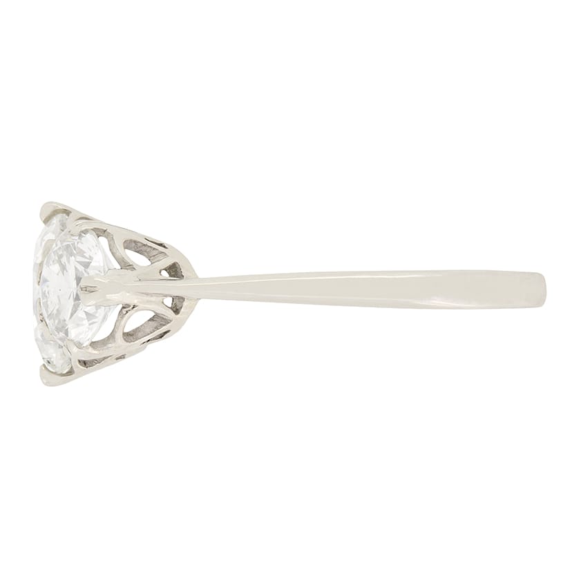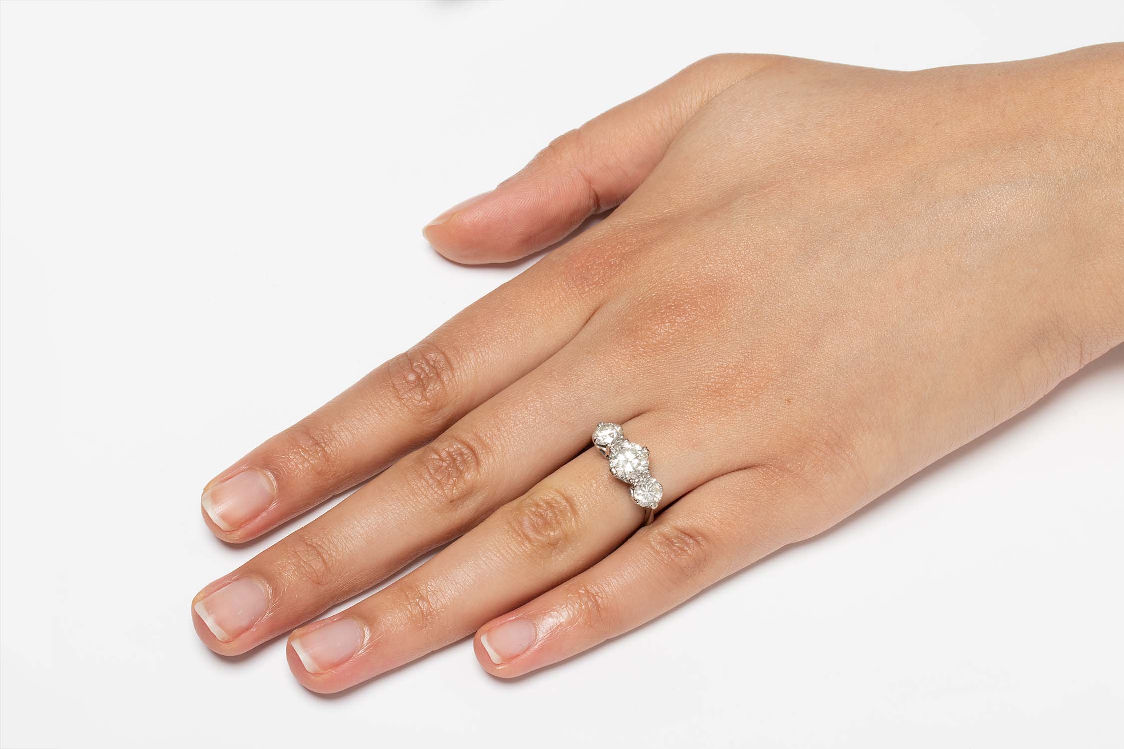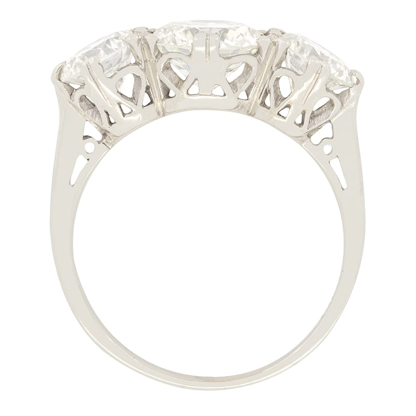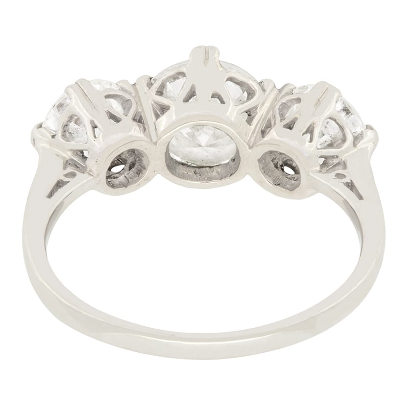 Late Art Deco 3.00ct Diamond Three Stone Ring, c.1940s