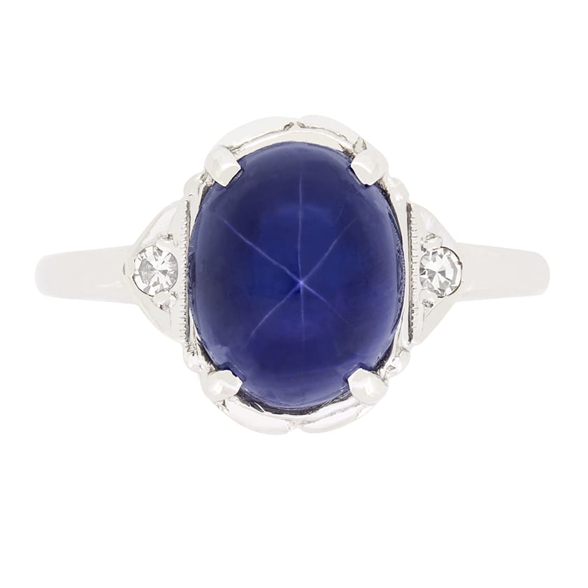 Late Deco 3.75ct Star Sapphire Solitaire Ring, c.1940s