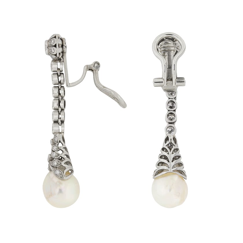 Late Deco Diamond and Pearl Drop Earrings, c.1930s