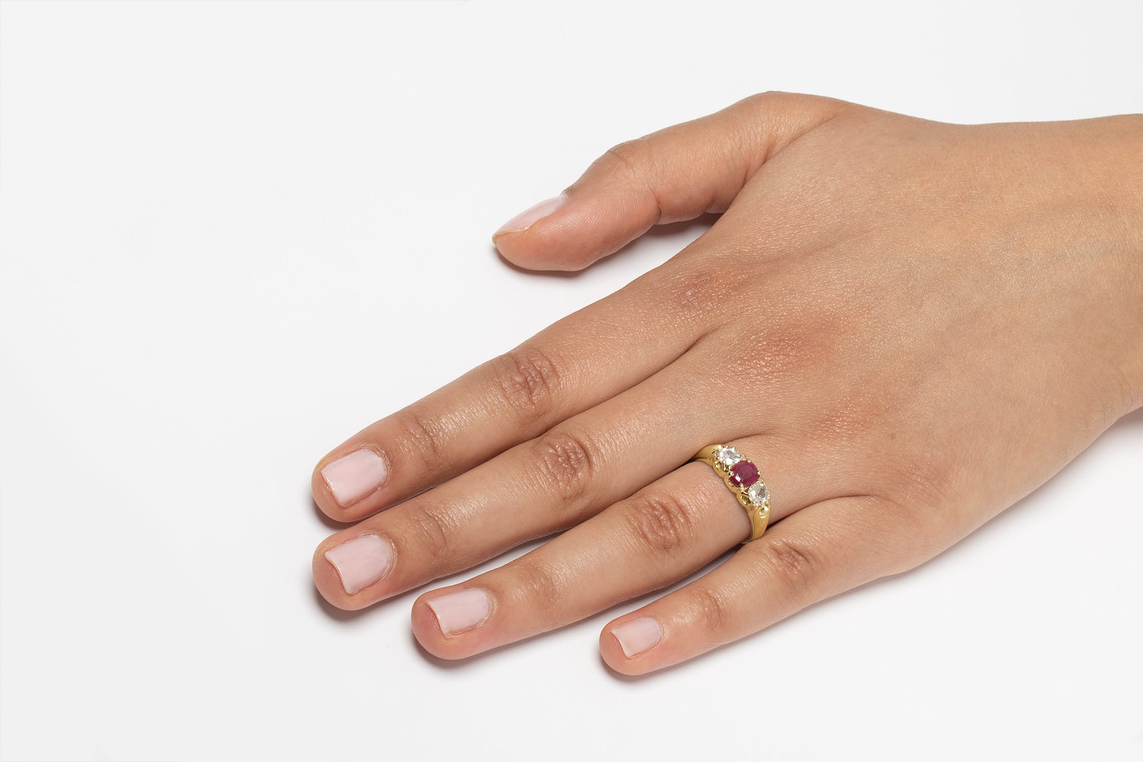 Late Victorian 0.50ct Ruby and Diamond Three Stone Ring, c.1900s