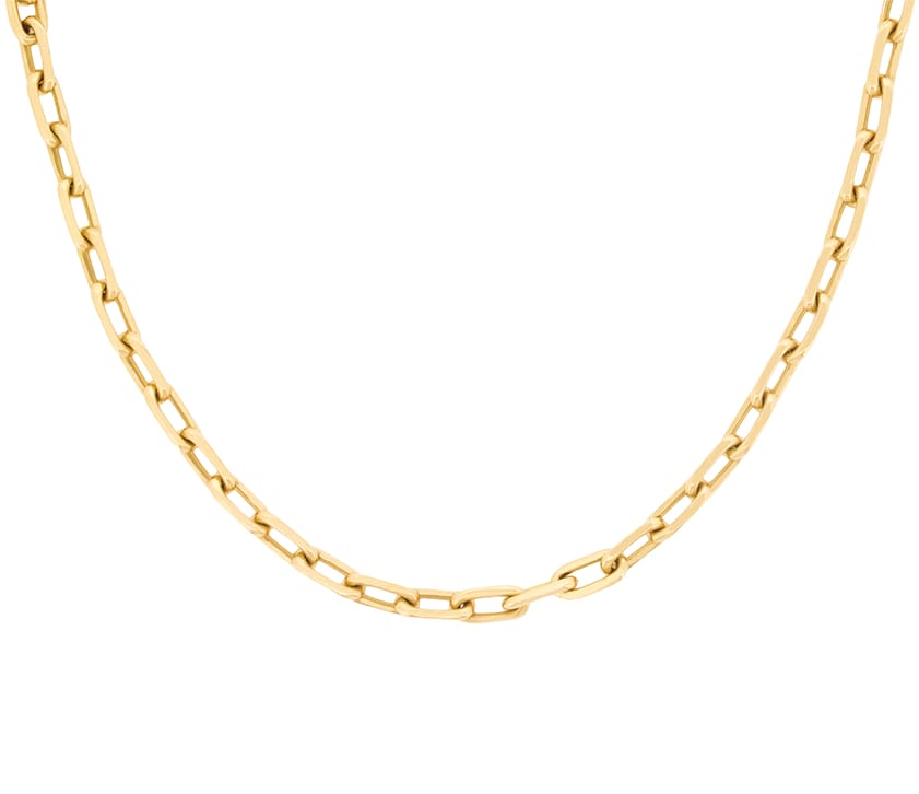 Weighing 20.2 grams, this necklace is made from 18 carat yellow gold and is from the Santos De Cartier collection. It has the original makers mark on the chain and is a linked design. It is plain gold and is 16 inches in length, which is the small size with Cartier.