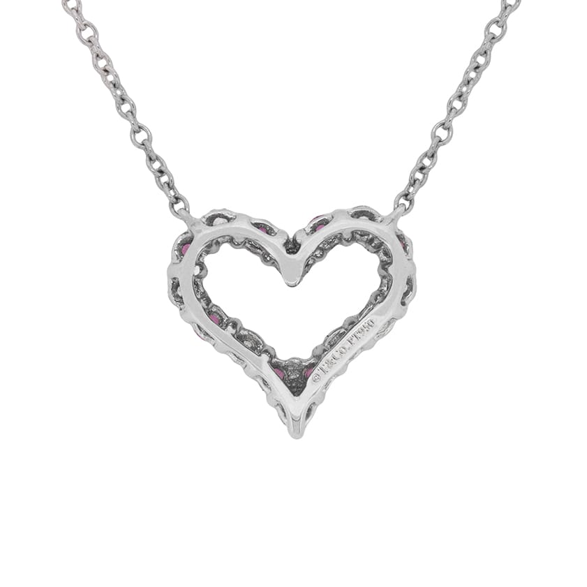 Tiffany & Co Diamond and Pink Sapphire Heart Necklace