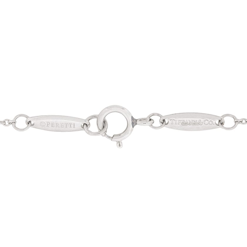 From the Elsa Peretti collection at Tiffany & Co, this pendant is a popular choice within the ‘Diamonds By The Yard’ design. The sparkling diamond weighs 0.34 caratand is F in colour and VS1 in clarity. The excellent quality is typical of Tiffany & Co jewellery. The rub over setting and chain are all made from platinum and the chain has the original makers mark. This lovely necklace would make a great gift!