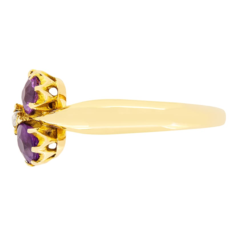 Victorian 0.60ct Amethyst and Diamond Clover Ring, c.1880s