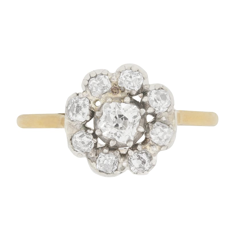 Victorian 1.10ct Diamond Daisy Cluster Ring, c.1860s
