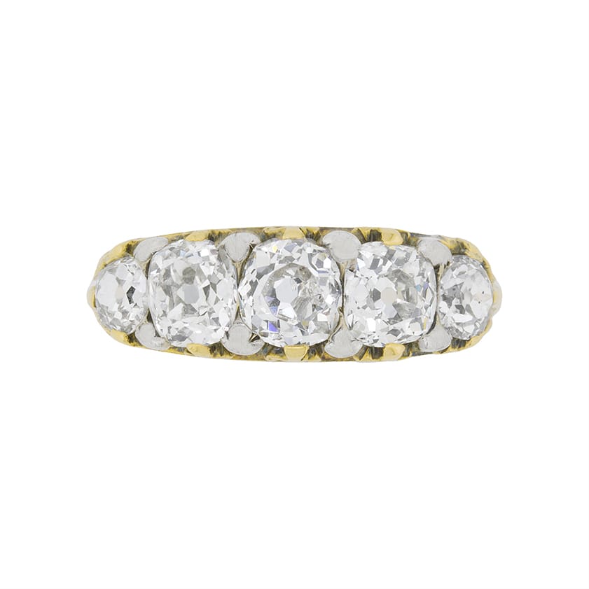 Victorian 2.30 Carat Five Stone Diamond Ring, c.1900s