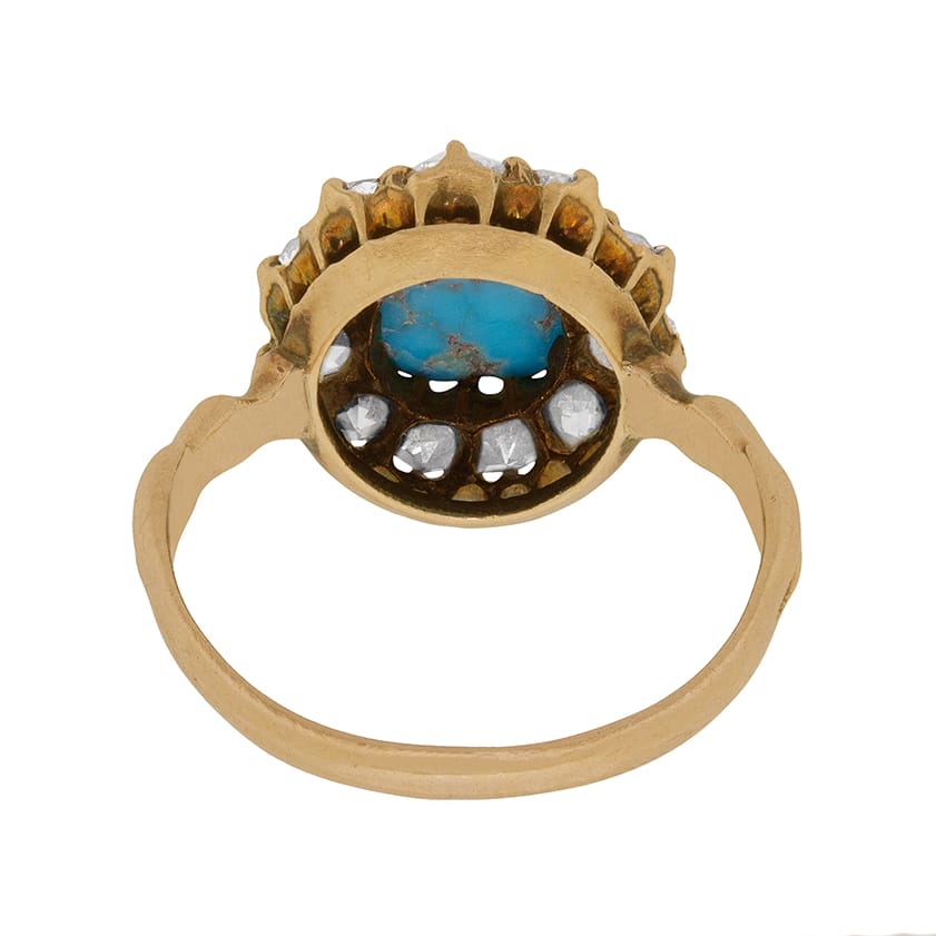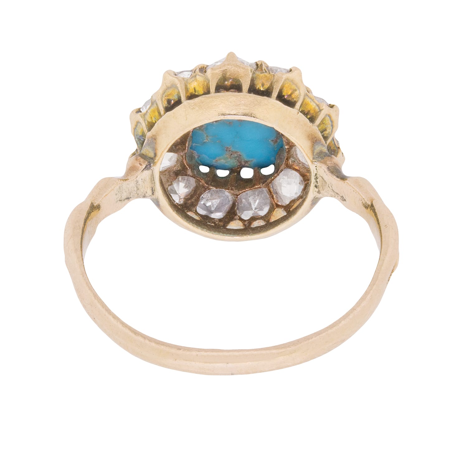 Victorian Cabochon Turquoise and Old Cut Diamond Halo Ring, c.1880s