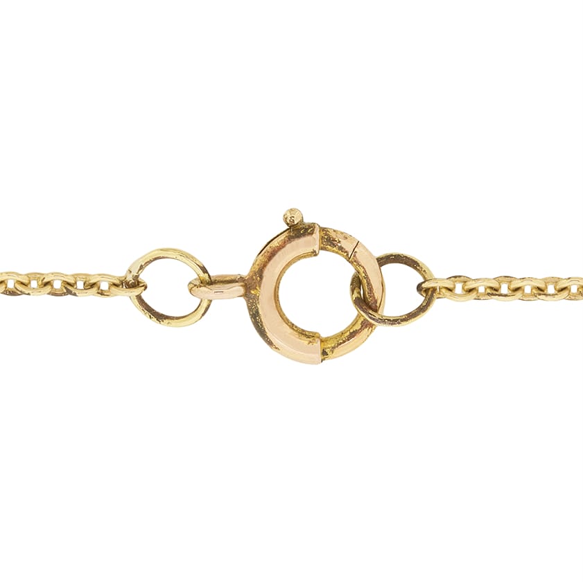 This unique and handmade piece is both a pendant and a brooch. Dating back to the 1880s, it is made in silver and 15 carat yellow gold, the typical metals of choice. The setting work holding the diamonds and pearl are silver and the diamonds have a combined weight of 1.60 carat. They match in quality as well, estimated as G in colour and SI in clarity. The pearl is natural and adds character to this already interesting piece. It hangs on a gold chain.
