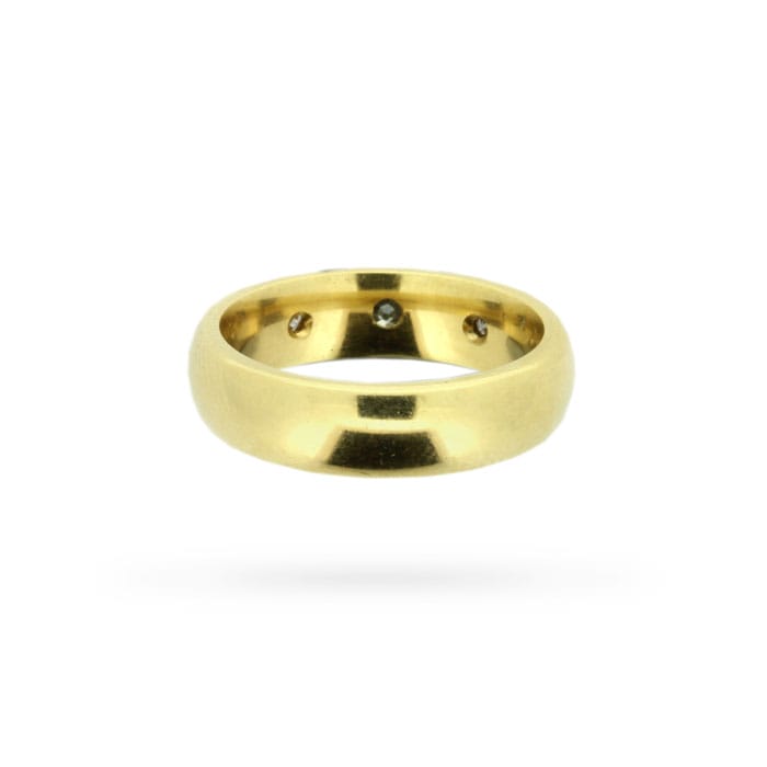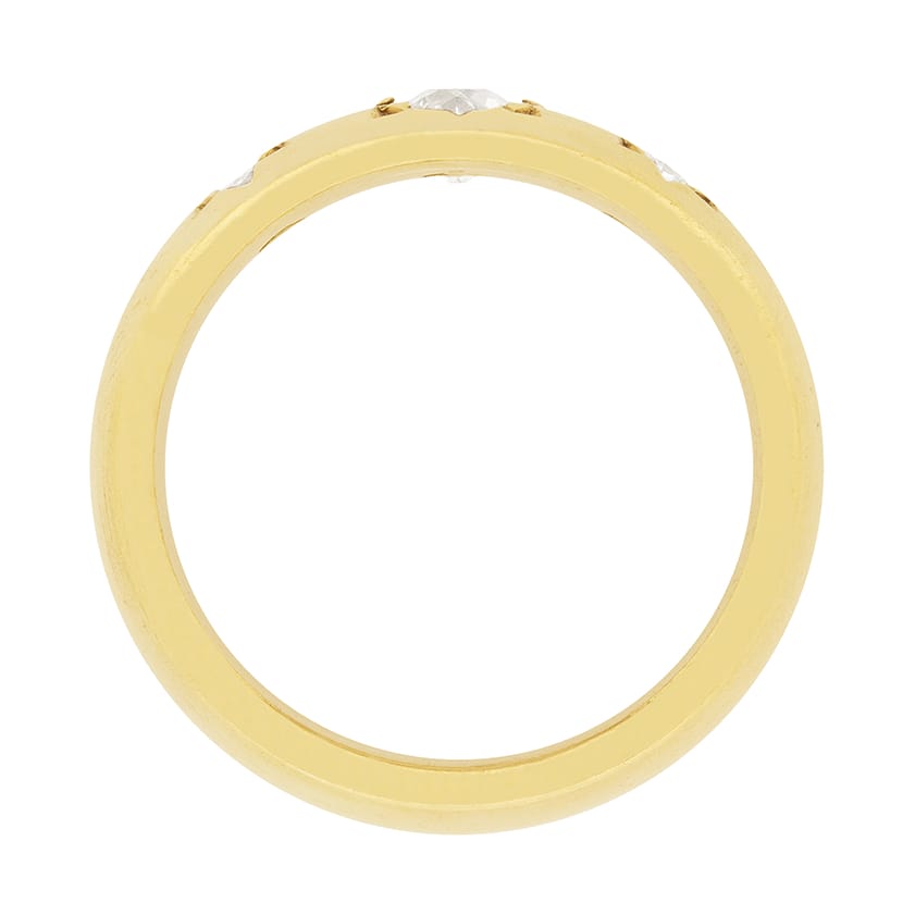 This quintessential example of a Victorian era three stone gypsy ring dates from the 1890s.