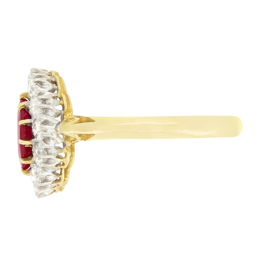 Vintage 1.00ct Ruby and Diamond Cluster Ring, c.1950s