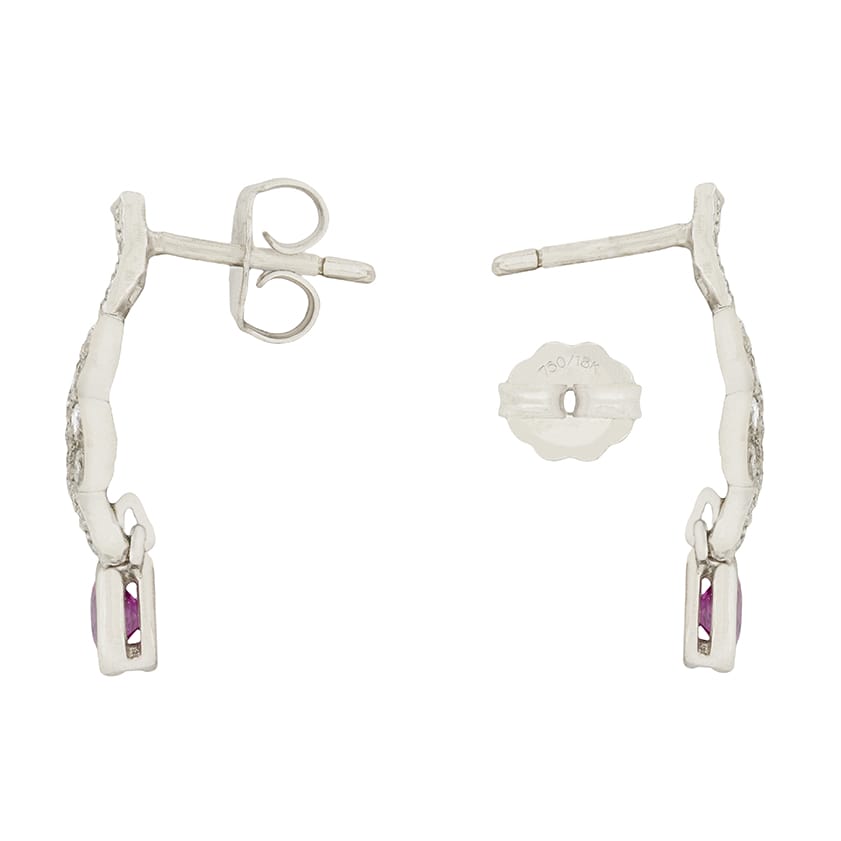 Vintage 0.60ct Diamond and Pink Sapphire Earrings, c.1950s