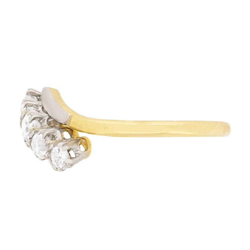 Late Art Deco Diamond Five Stone Crossover Ring, c.1930s