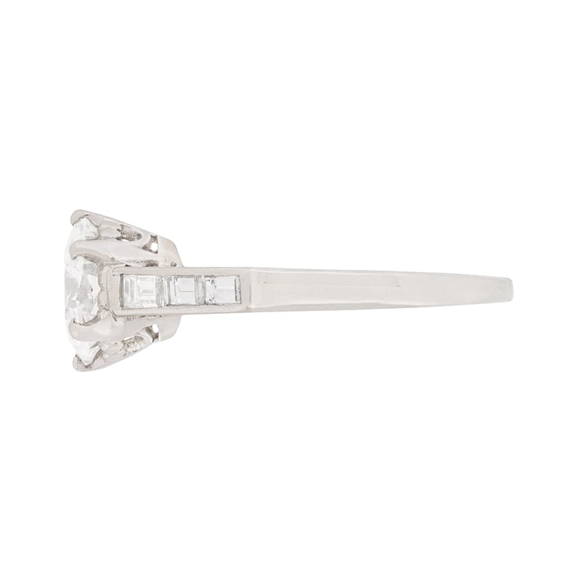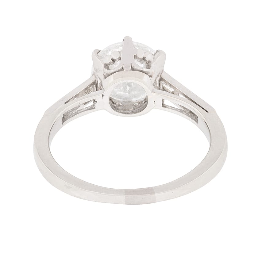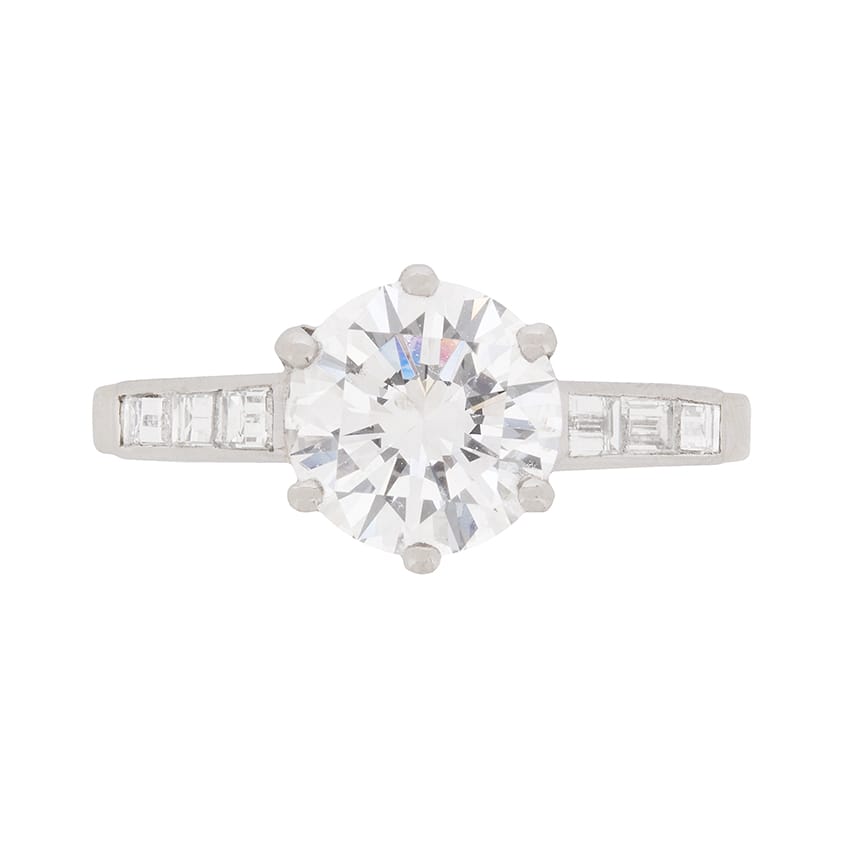Set in platinum during the 1940s, this timeless engagement ring features a stunning 2.01 carat round brilliant cut diamond mounted in a vintage setting.