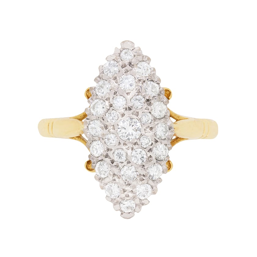Vintage Marquise-Shaped Diamond Cluster Ring, c.1976