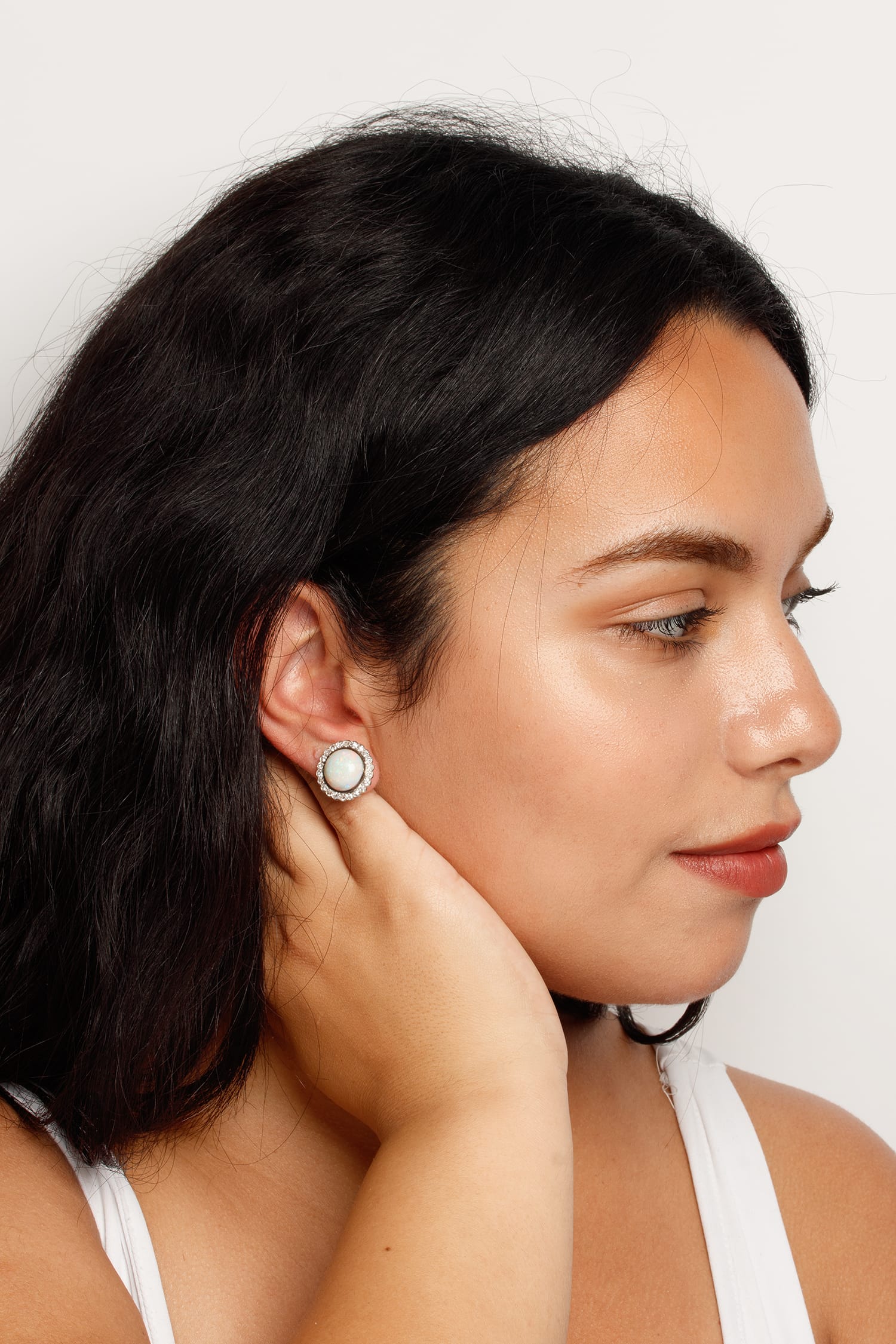 Vintage Opal and Diamond Cluster Earrings, c.1950s