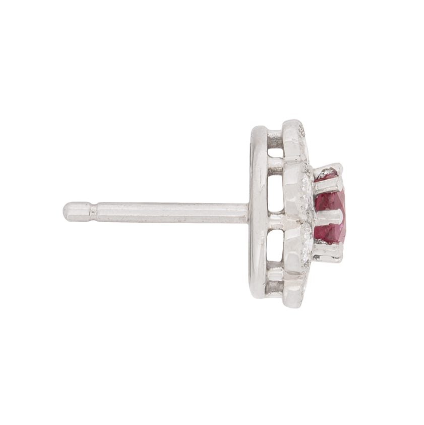 Vintage 0.50ct Ruby and Diamond Halo Earrings, c.1950s