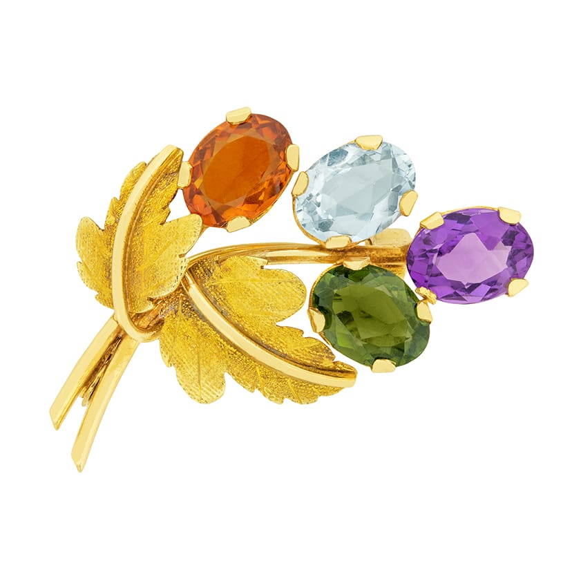 Vintage 4.00ct Topaz, Amethyst and Citrine Bouquet Brooch, c.1970s
