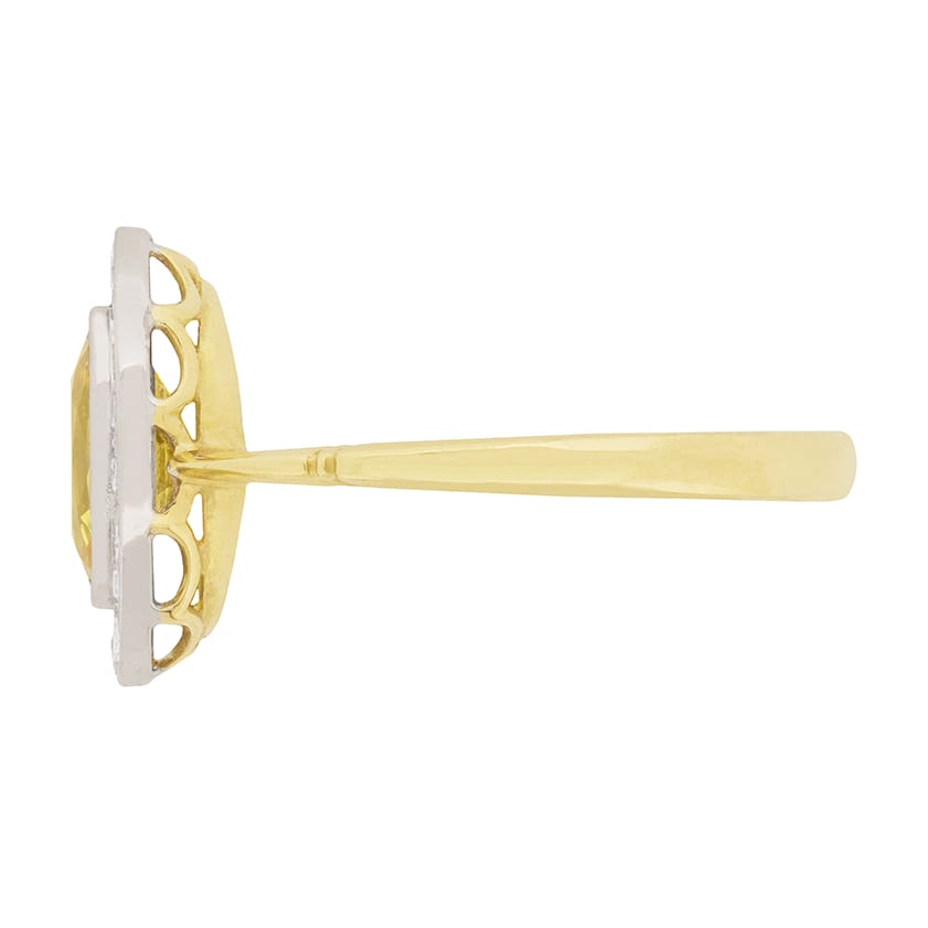 Vintage Yellow Sapphire and Diamond Halo Ring, c.1950s